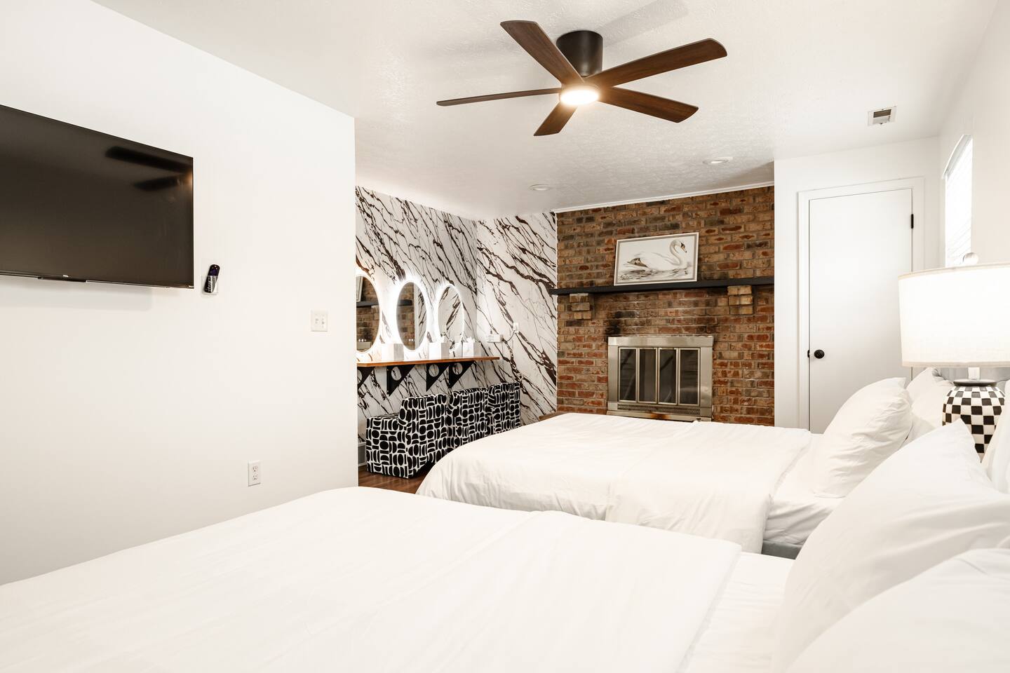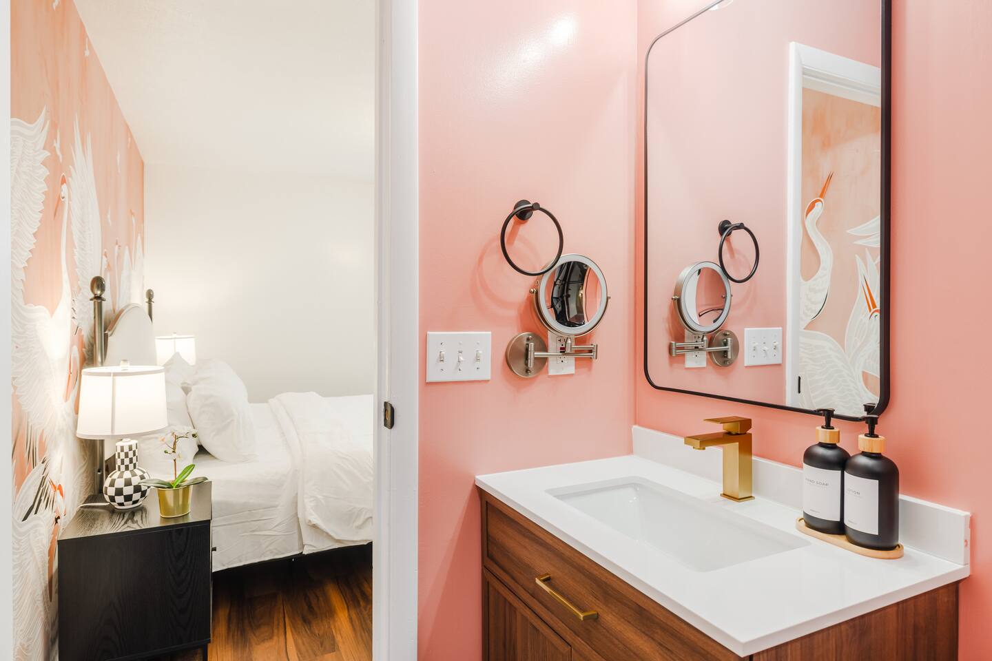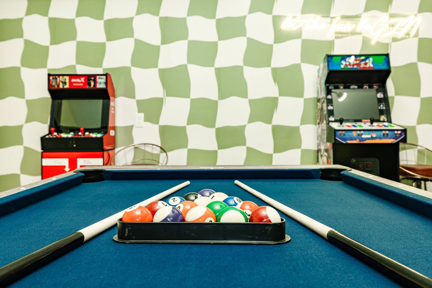 Getting Ready Station: Well-lit vanities with large mirrors, plush seating, and ample counter space for hair & makeup essentials GameLounge: Unwind in our game lounge, complete with Arcade games, Table tennis, Air hockey and toddler area. Fun for all ages! Enjoy game nights with our smart TV Stylish Interiors:Thoughtfully designed with modern decor and cozy furnishings Fully Equipped Kitchen & ConvenientLocation: Book your stay now & make unforgettable memories. We can't wait to host you!