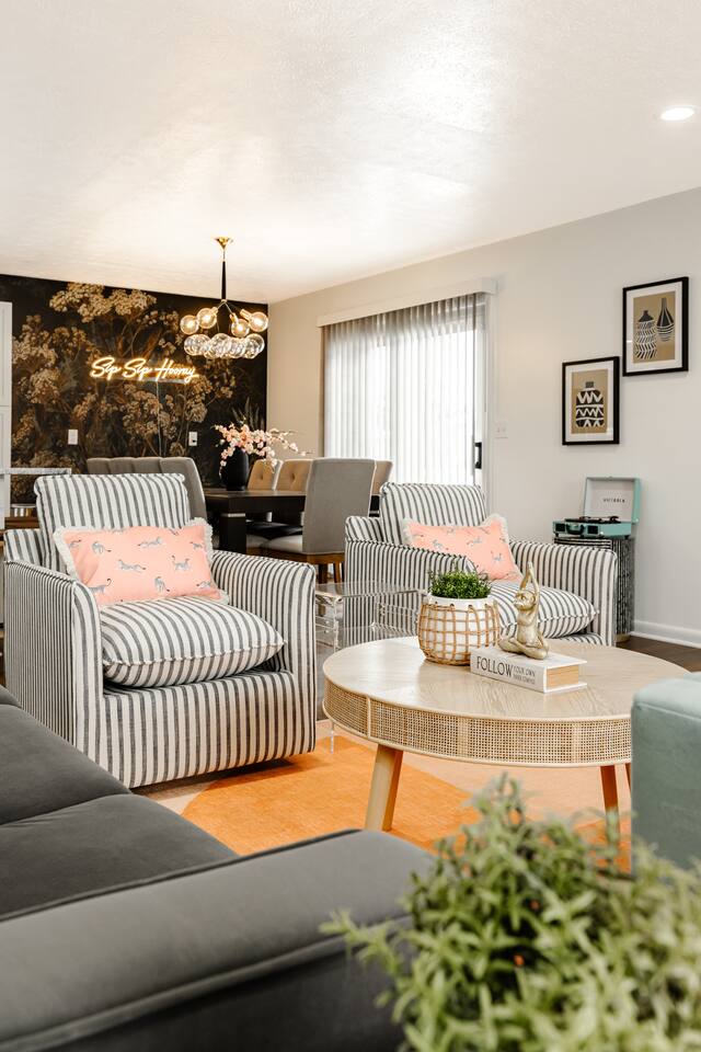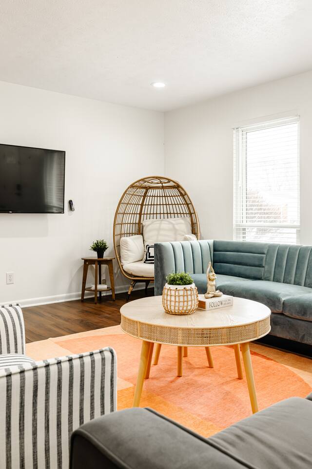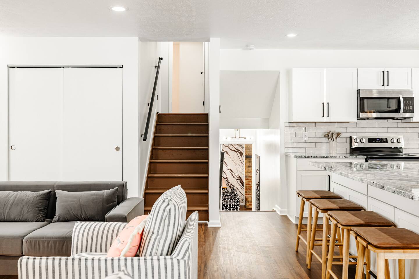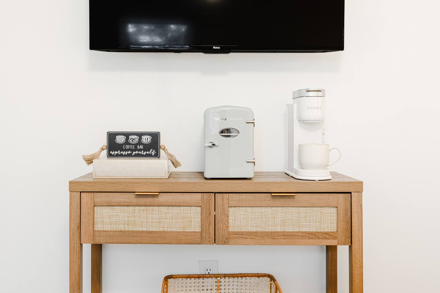 Getting Ready Station: Well-lit vanities with large mirrors, plush seating, and ample counter space for hair & makeup essentials GameLounge: Unwind in our game lounge, complete with Arcade games, Table tennis, Air hockey and toddler area. Fun for all ages! Enjoy game nights with our smart TV Stylish Interiors:Thoughtfully designed with modern decor and cozy furnishings Fully Equipped Kitchen & ConvenientLocation: Book your stay now & make unforgettable memories. We can't wait to host you!